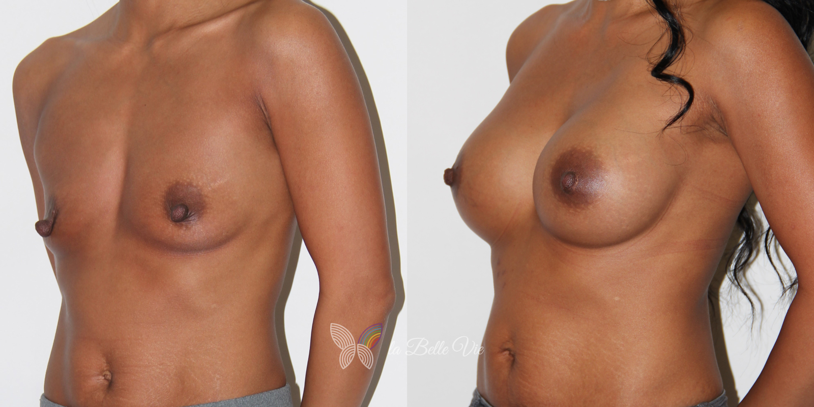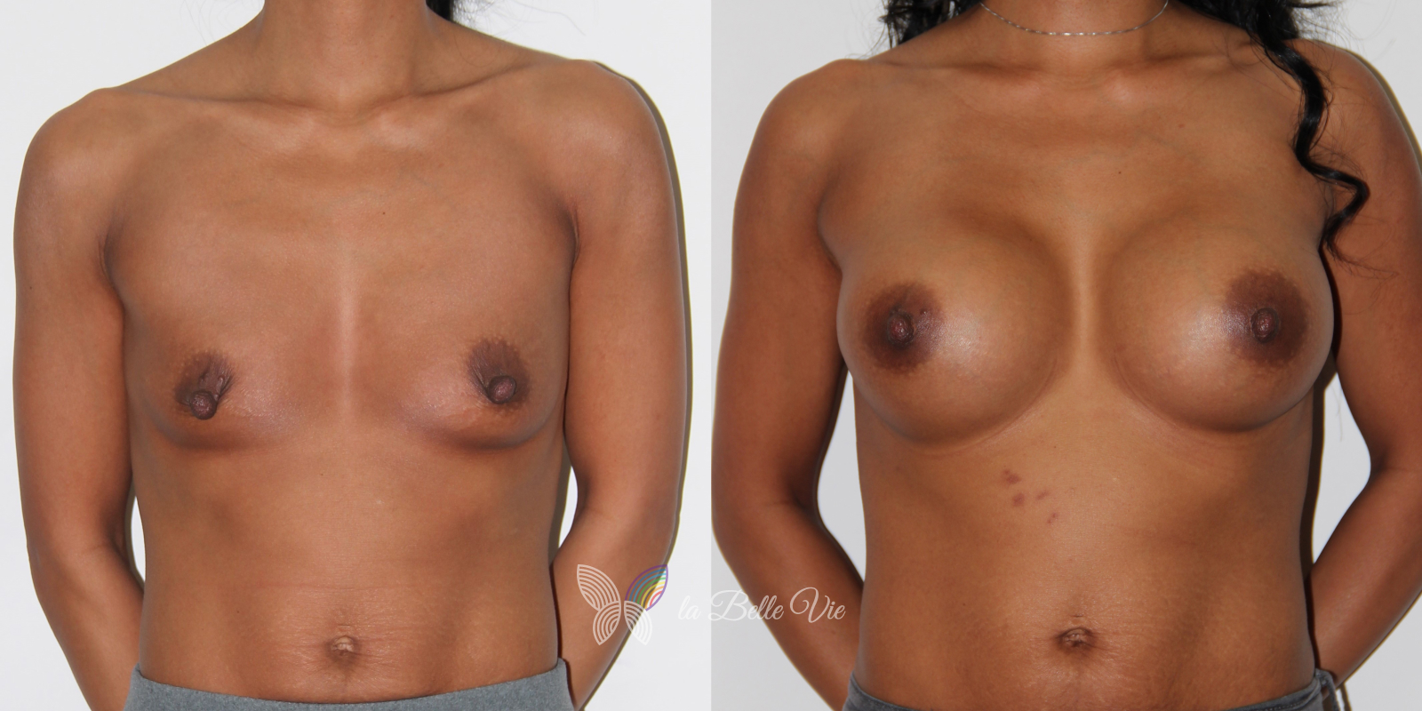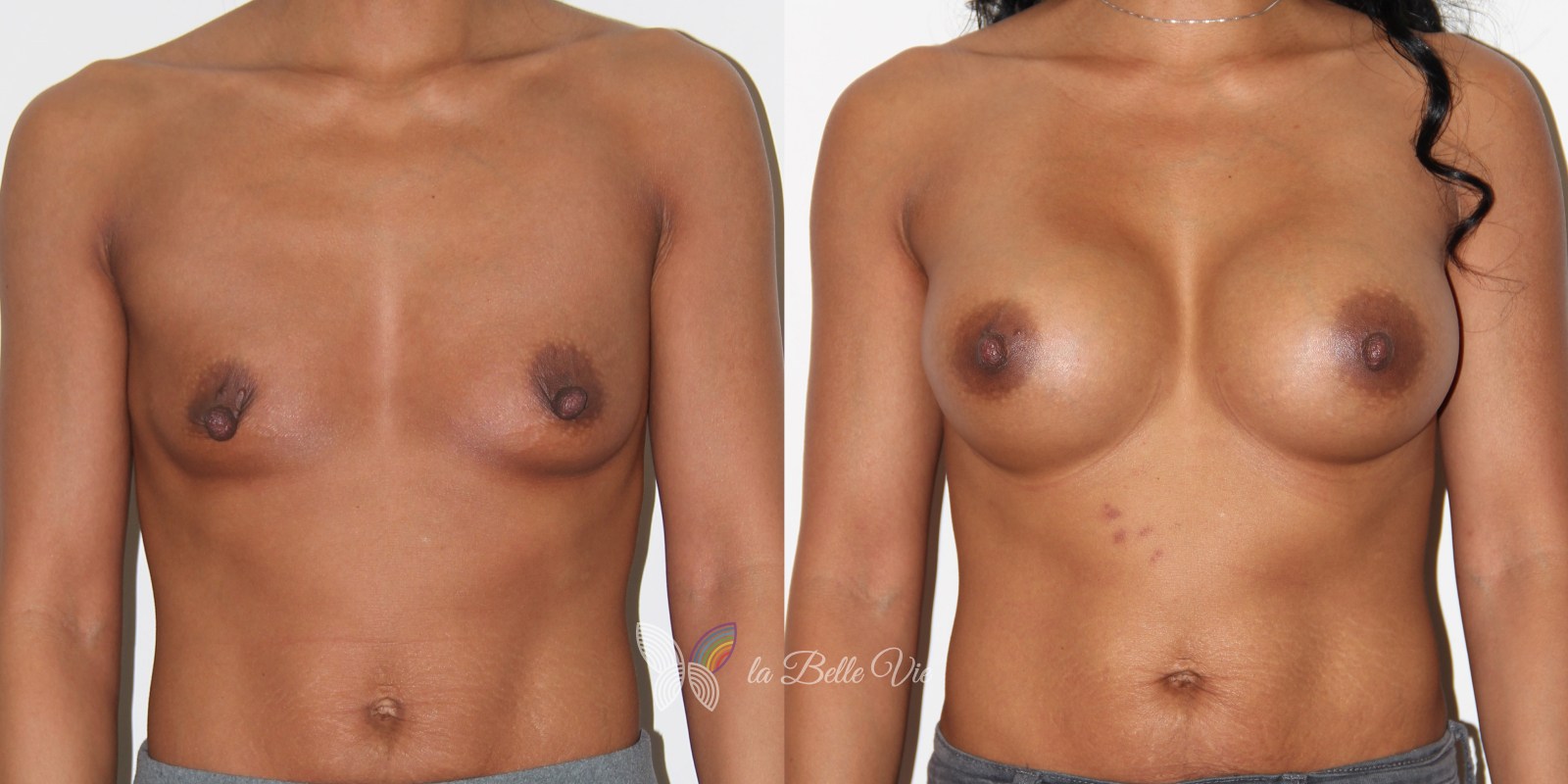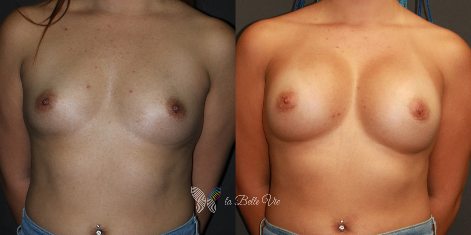 Before: The patient is five feet three inches tall and weighs 146 pounds, with a body mass index (BMI) of 25.8. On examination, she has small breasts, approximately a B cup, and she expressed a desire to increase to a C or D cup.