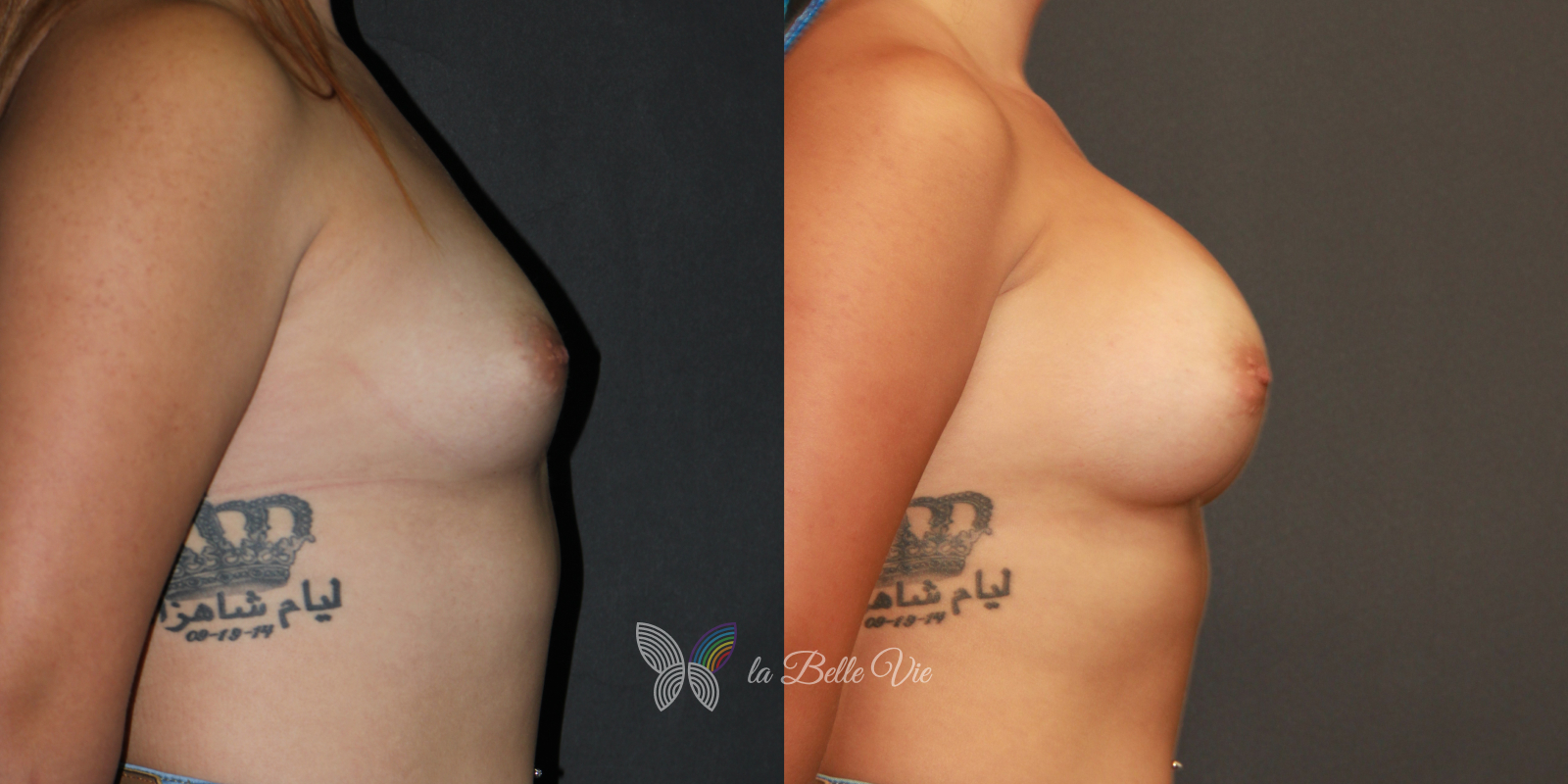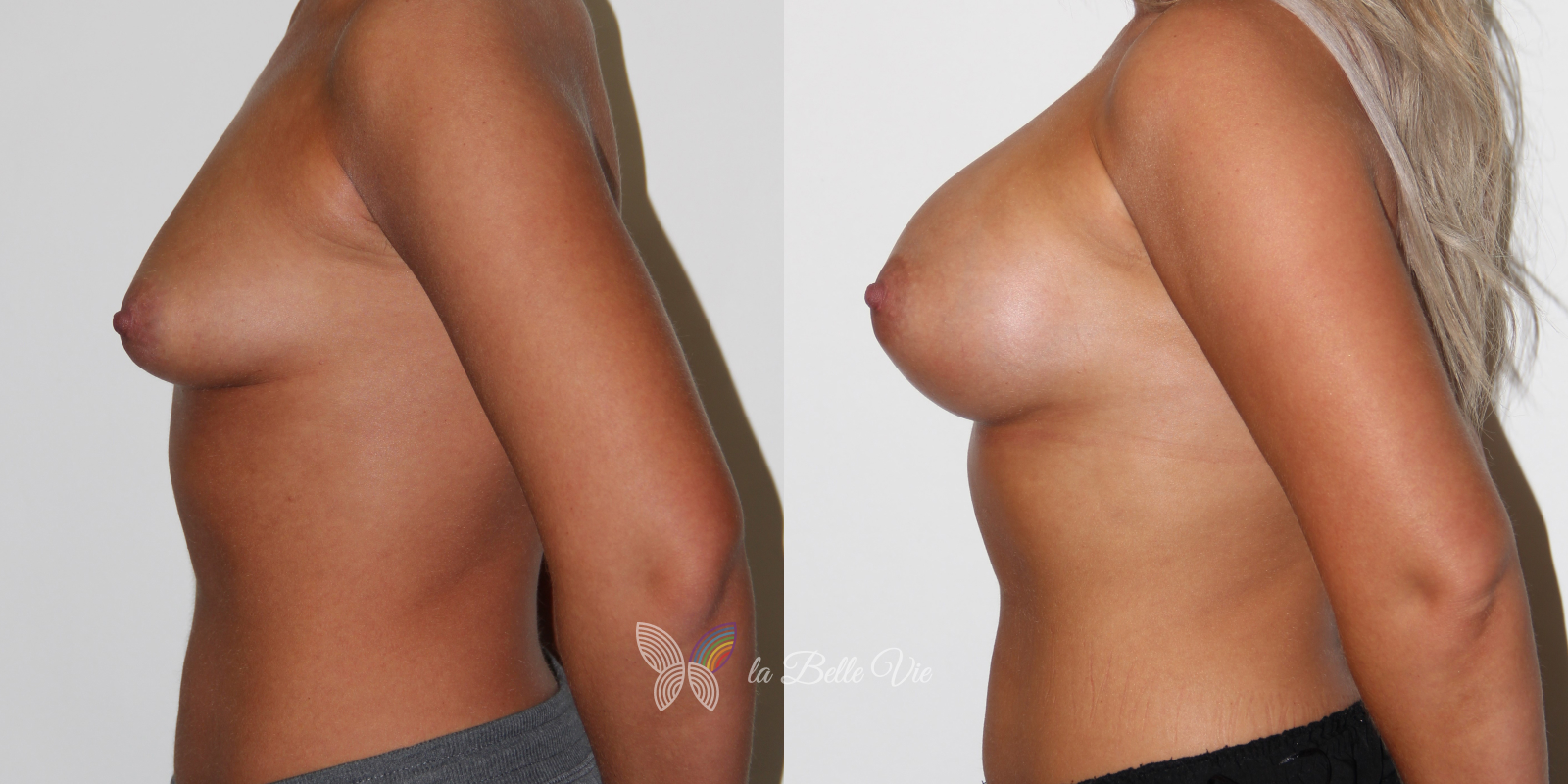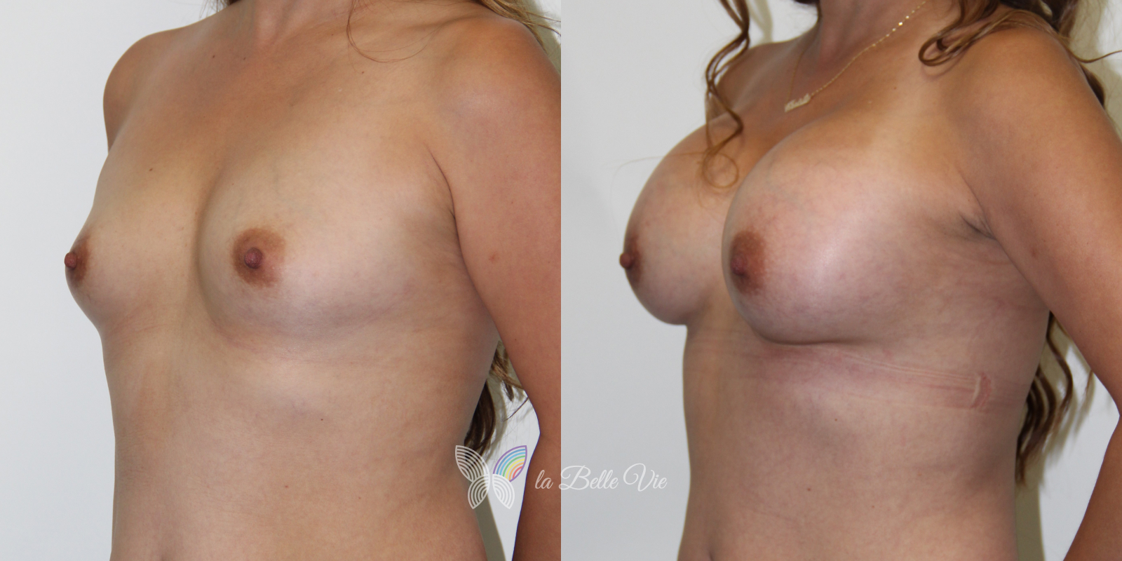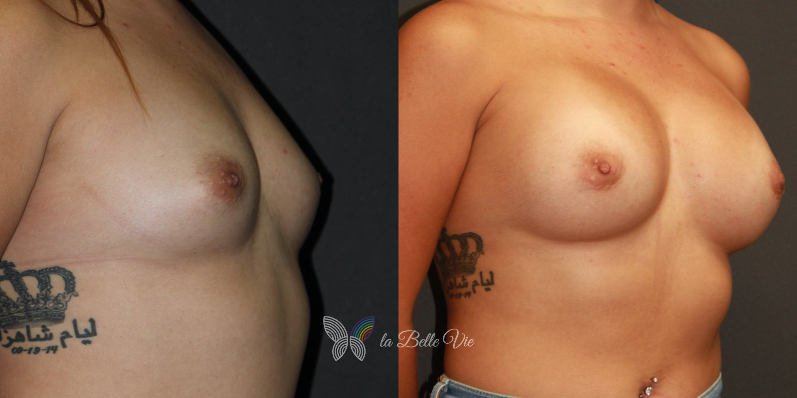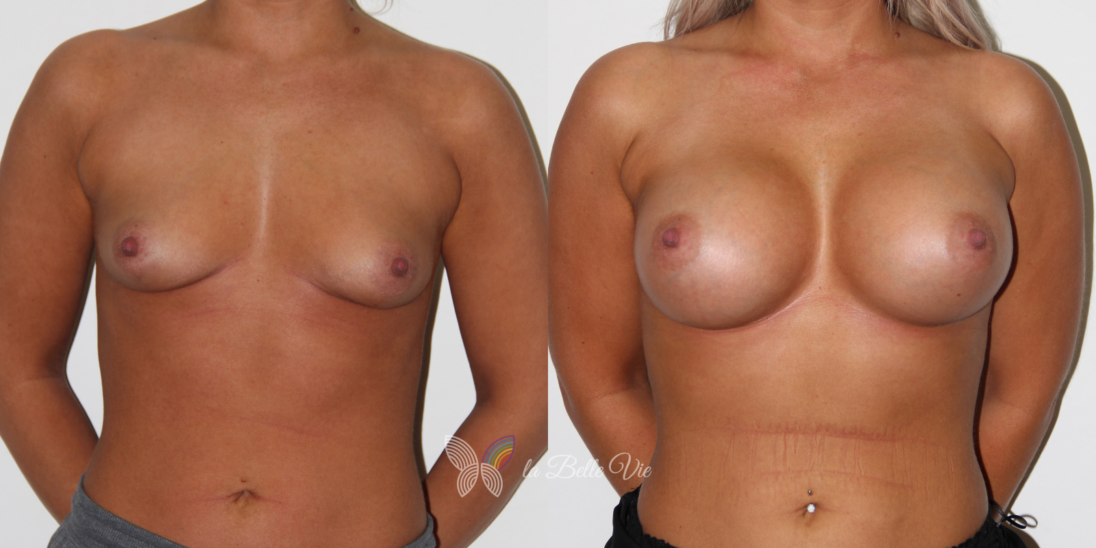 Before: The patient is five feet three inches tall and weighs 146 pounds, with a body mass index (BMI) of 25.8. On examination, she has small breasts, approximately a B cup, and she expressed a desire to increase to a C or D cup.