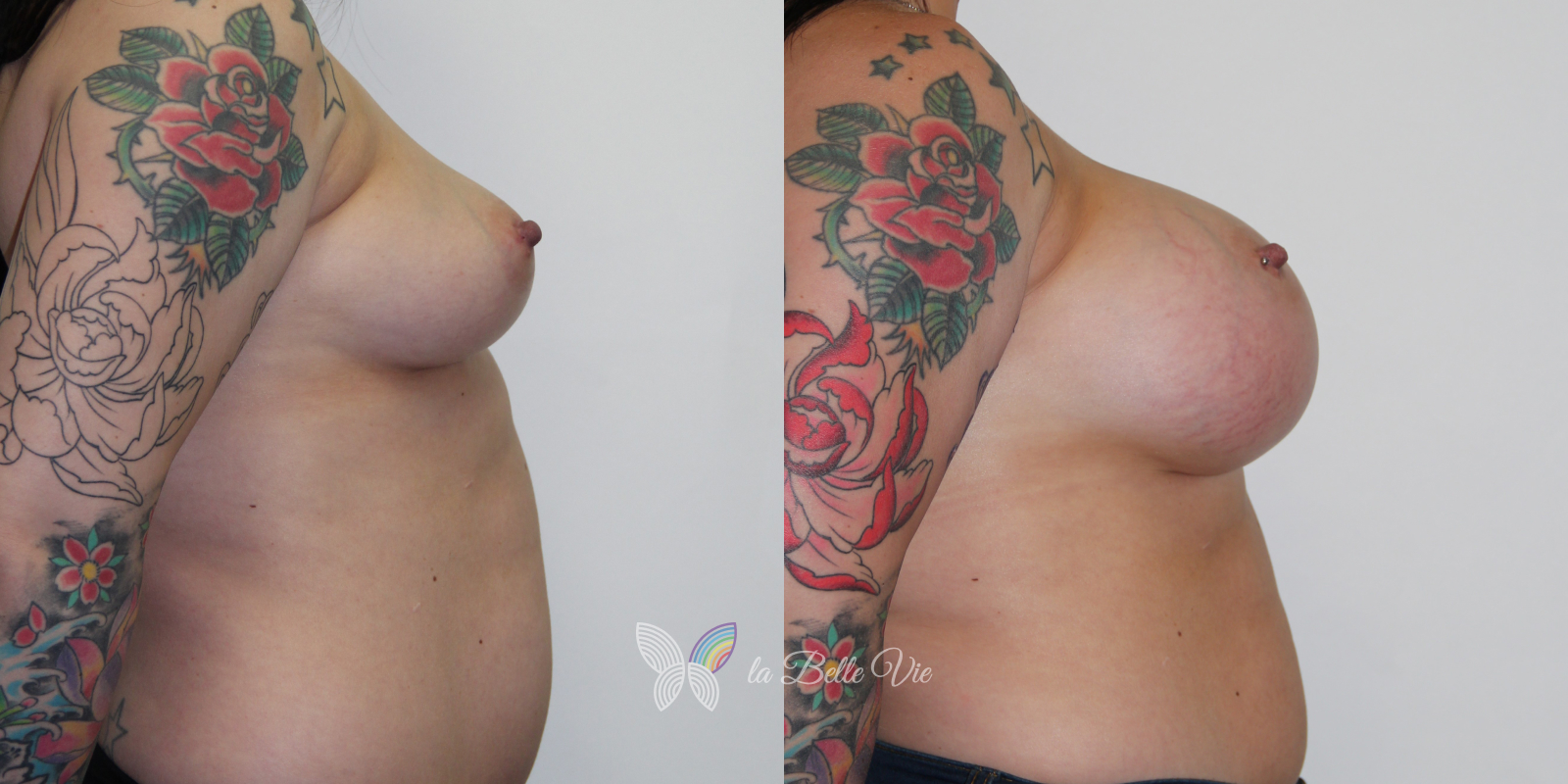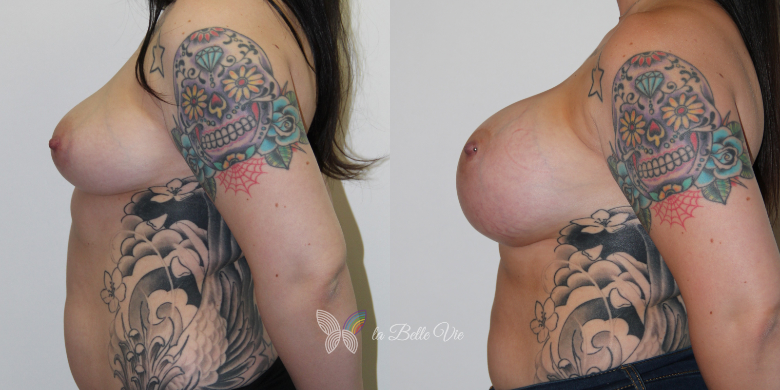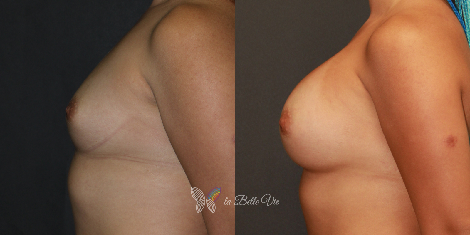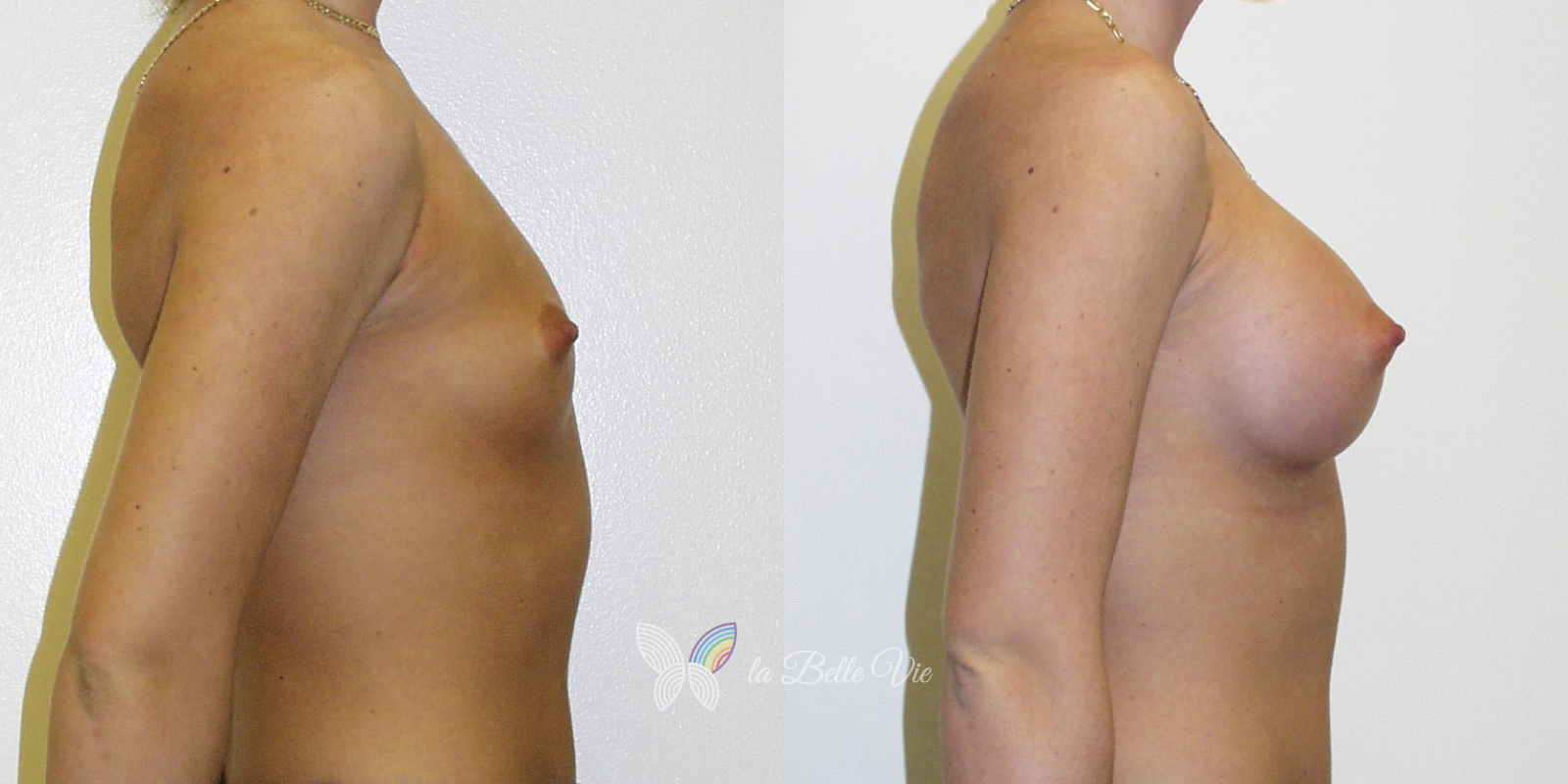 Before: 39-year-old woman here to see us for consultation on breast augmentation. She has had two children 10 years ago. She has noticed significant changes in her breasts, especially with her nipples and changing volume. On examination, she is a petite woman with small breasts.
