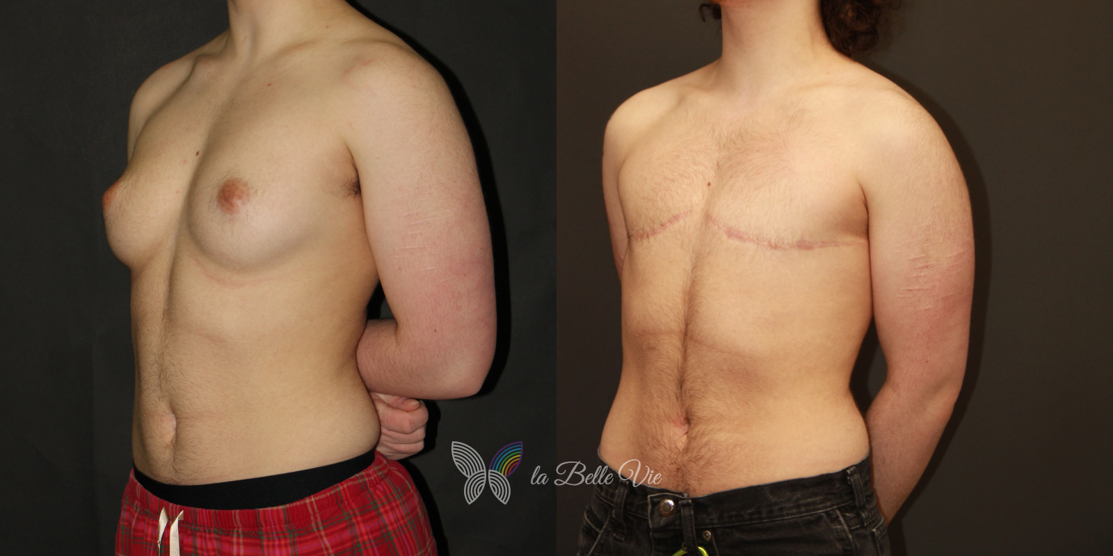 Double incision mastectomy, no nipples. Tissue Weight: L:380g, R:430g